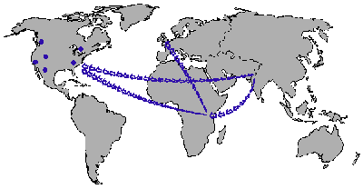 West Europe and the North American Continent - spread from the east